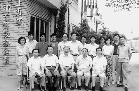 1991年7月,楊昌基(前排左三)與上海市浦東開發辦工作人員在一起