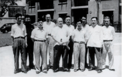 1951年夏,胡立教(前排右一)陪同陳毅(前排中)在華東人民革命大學調研。