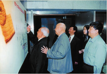 2002年3月19日,胡立教(左一)到中國工商銀行上海分行調研并參觀銀行博物館。