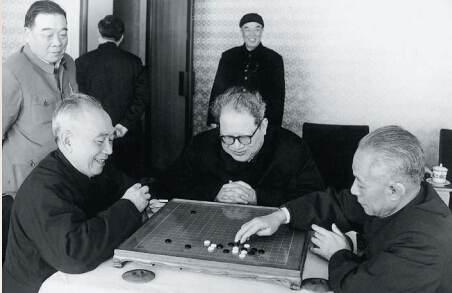 胡立教(左一)與陳丕顯(右二)對弈。