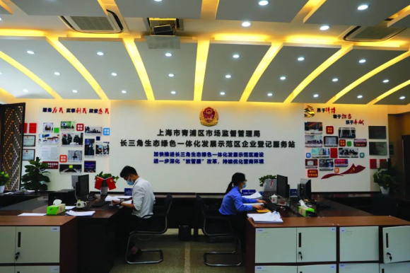 上圖為打通上海和江蘇之間斷點的元蕩生態修復及岸線貫通工程;下圖為朱家角長三角生態綠色一體化發展示范區企業登記服務站 積極推動長三角生態綠色一體化發展示范區建設進入加速期,探索形成一批一體化制度創新成果。