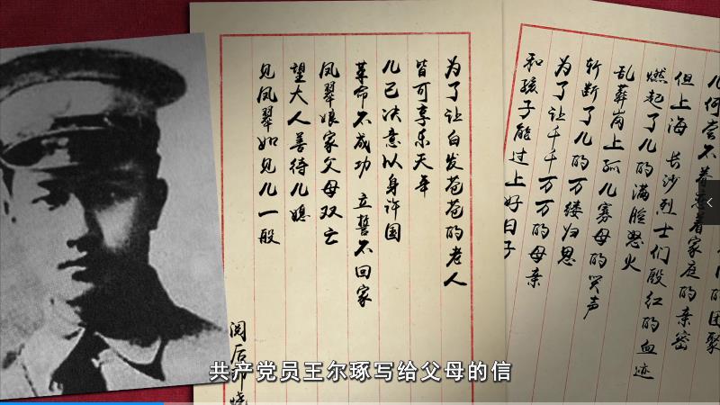 中共湖南省委黨史研究院院長胡振興:其實相差只有幾天,就在這個時候,王爾琢感覺到非常愧疚妻兒,就提筆給父母寫了一封信,也就是大家所熟悉的“托孤書”。