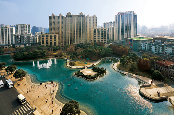 上海市中心最大的人工湖綠地太平橋公園。