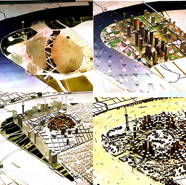 1992年5月26日,上海市陸家嘴中心地區規劃及城市設計國際咨詢委員會正式向5家單位發出了《邀請書》。經過近半年的緊張工作,到11月初,中、意、日、法、英五個國家的專家陸續交來了概念方案和規劃模型。這五個方案的立意、目標、形態、綠化、交通各具特色,對同一地區、同一發展目標的設計結果差異很大,反映了不同的現代城市設計流派和民族文化風貌的強烈對比,都有各自獨到和不足之處。