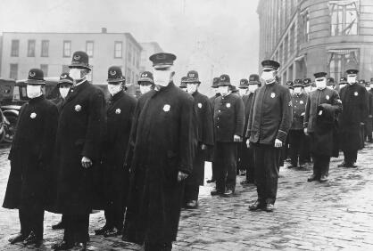 西班牙大流感時期,佩戴口罩執勤的美國警察
