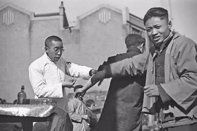 上海街頭提供預防霍亂和傷寒的免費接種服務