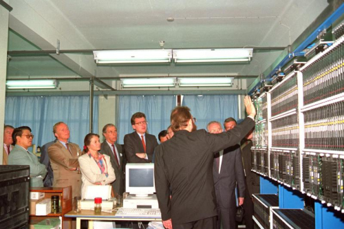 浦東新廠建設(shè)的同時(shí),浦西老廠依然開工生產(chǎn)滿足市場需求。經(jīng)過兩年多的邊建設(shè)、邊生產(chǎn),浦東新廠初具規(guī)模。1994年下半年,浦西老廠第一條生產(chǎn)線開始拆遷,到1995年新廠正式建成搬遷完畢,開始了上海貝爾的浦東新篇章。上海貝爾浦東新廠設(shè)計(jì)年產(chǎn)500萬線,結(jié)果1996年生產(chǎn)能力就達(dá)到了600萬線,提前達(dá)到設(shè)計(jì)能力。上海貝爾成為當(dāng)時(shí)世界上規(guī)模最大、技術(shù)最先進(jìn)的程控電話設(shè)備制造商之一。當(dāng)時(shí)我們使用的很多技術(shù)都是國內(nèi)最先進(jìn)的,比如國內(nèi)第一批使用機(jī)器人生產(chǎn)等。技術(shù)的進(jìn)步、規(guī)模的擴(kuò)大,帶來了產(chǎn)品成本的不斷下降,也大大降低了國內(nèi)交換機(jī)的市場價(jià)格,程控交換機(jī)的國內(nèi)市場普及率也越來越高。這對于國內(nèi)通信行業(yè)的發(fā)展是非常重要的。