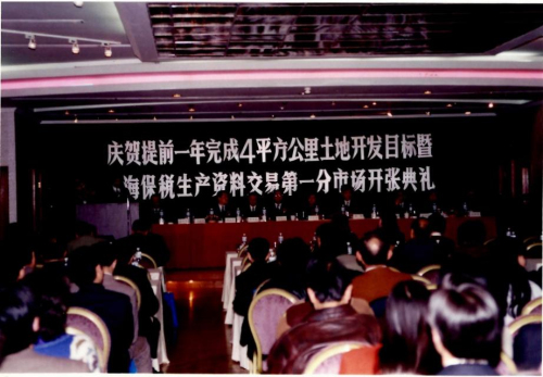 1993年11月,設(shè)在外高橋保稅區(qū)的上海保稅生產(chǎn)資料交易第一分市場(chǎng)舉行開(kāi)業(yè)典禮。新華社資料圖