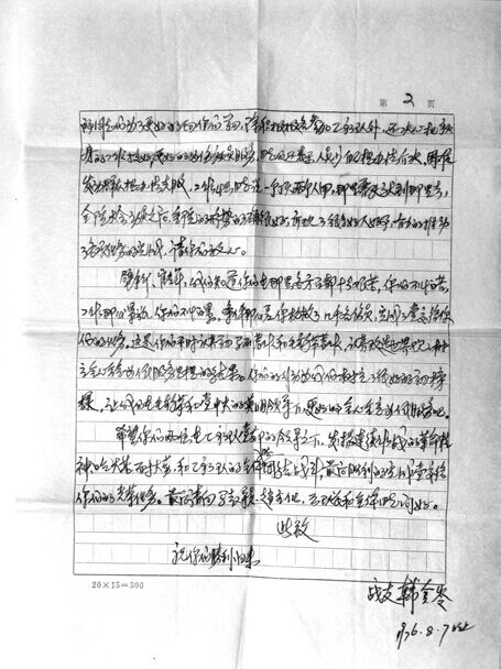 剛開始不能寫信,不能把當時的情況透露出來;到后來慢慢松一點了,我就給上海的醫院寫了一封信,醫院的支部書記還回復了我,現在我還保存著這封信。