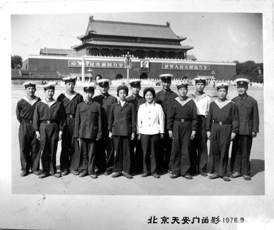 陳官輝(左四)參加北京海軍慶功會前,在天安門的合影