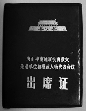 陳官輝赴北京參加“唐山豐南地震抗震救災先進單位和模范人物代表會議”的出席證