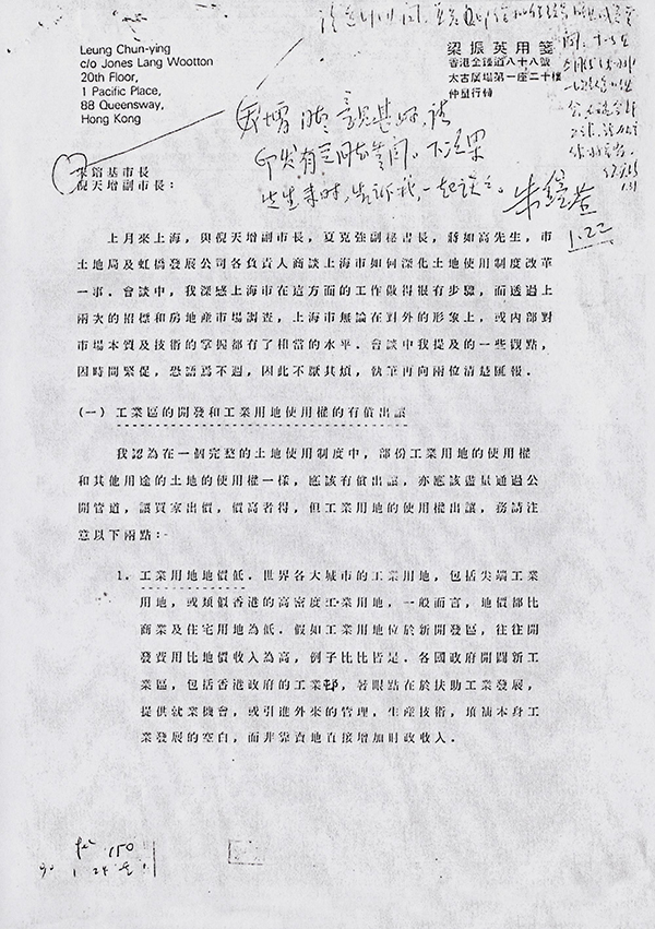 1990年1月,朱镕基在梁振英信件上所作批示的影印件。